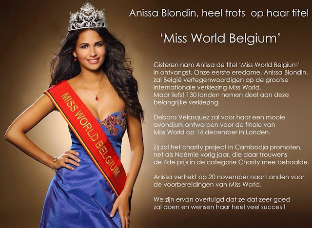 Officially confirmed that Laurence Langen will not represent Belgium in Miss World anymore. The new representative is Anissa Blondin, Miss Belgium 1st runner-up.